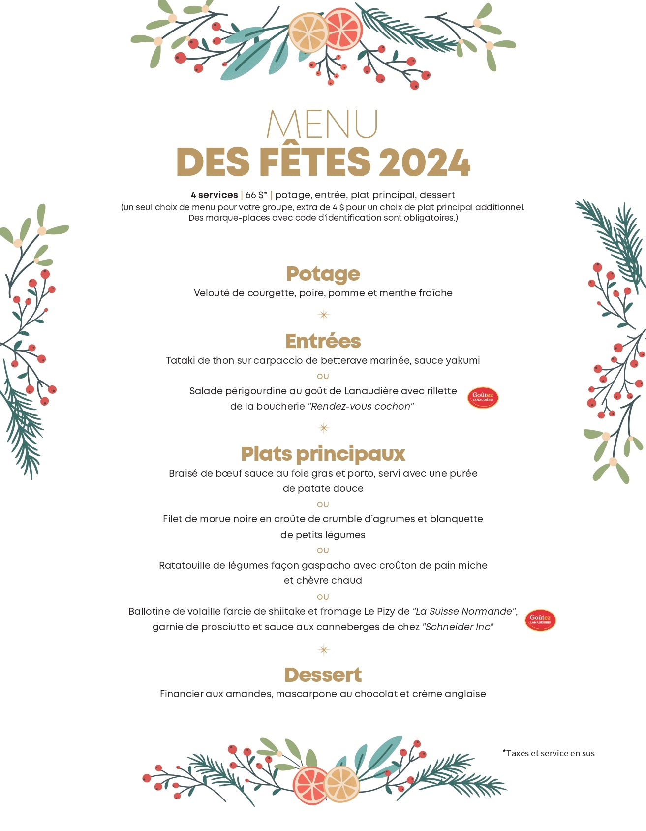 Holiday menu -